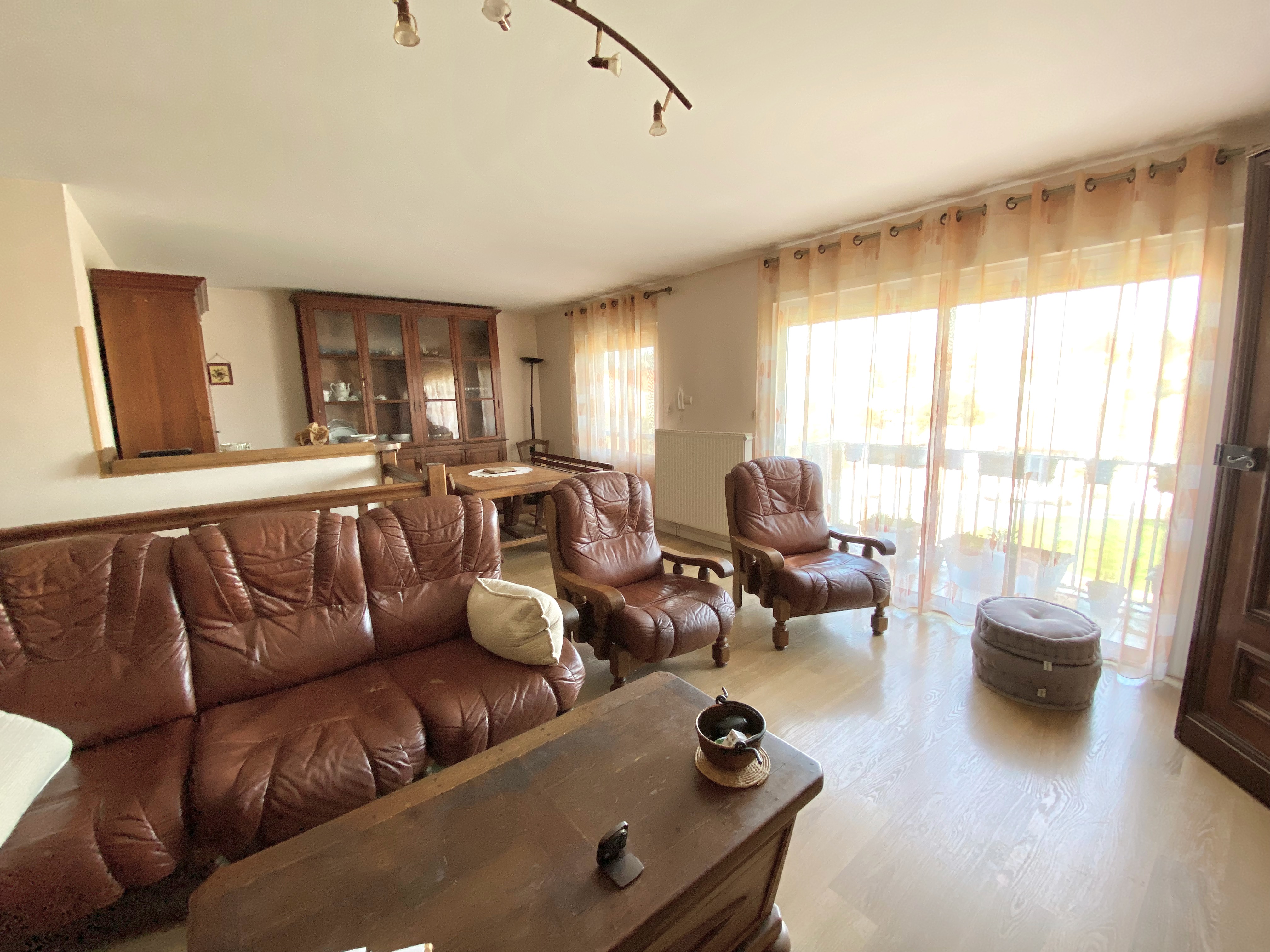 A l’étage, pièce de vie lumineuse de plus de 35 m2, orientée nord-est, ouvrant sur un balcon, une cuisine et une chambre donnant toutes deux sur une terrasse sud-ouest côté jardin, salle d’eau avec WC.