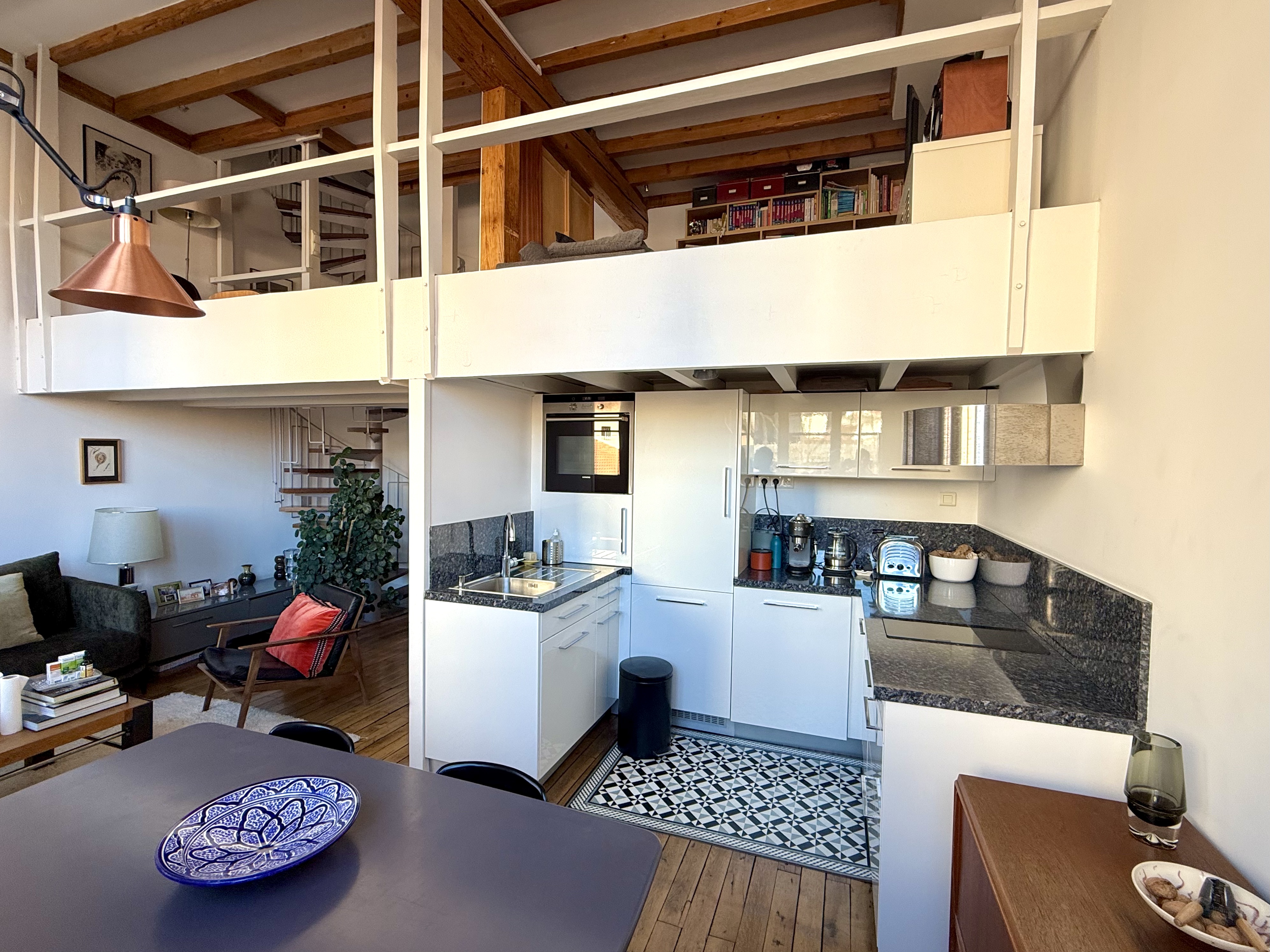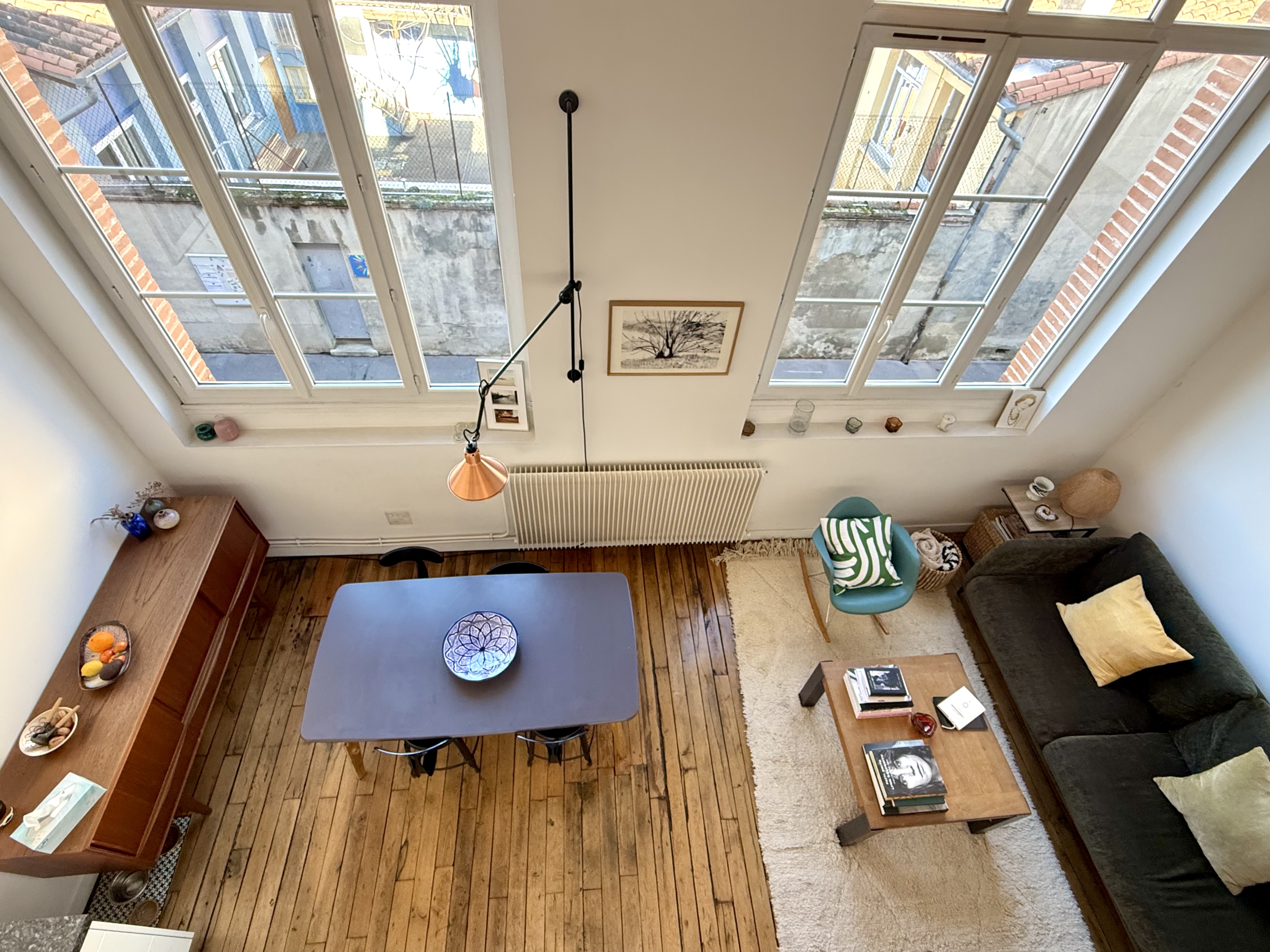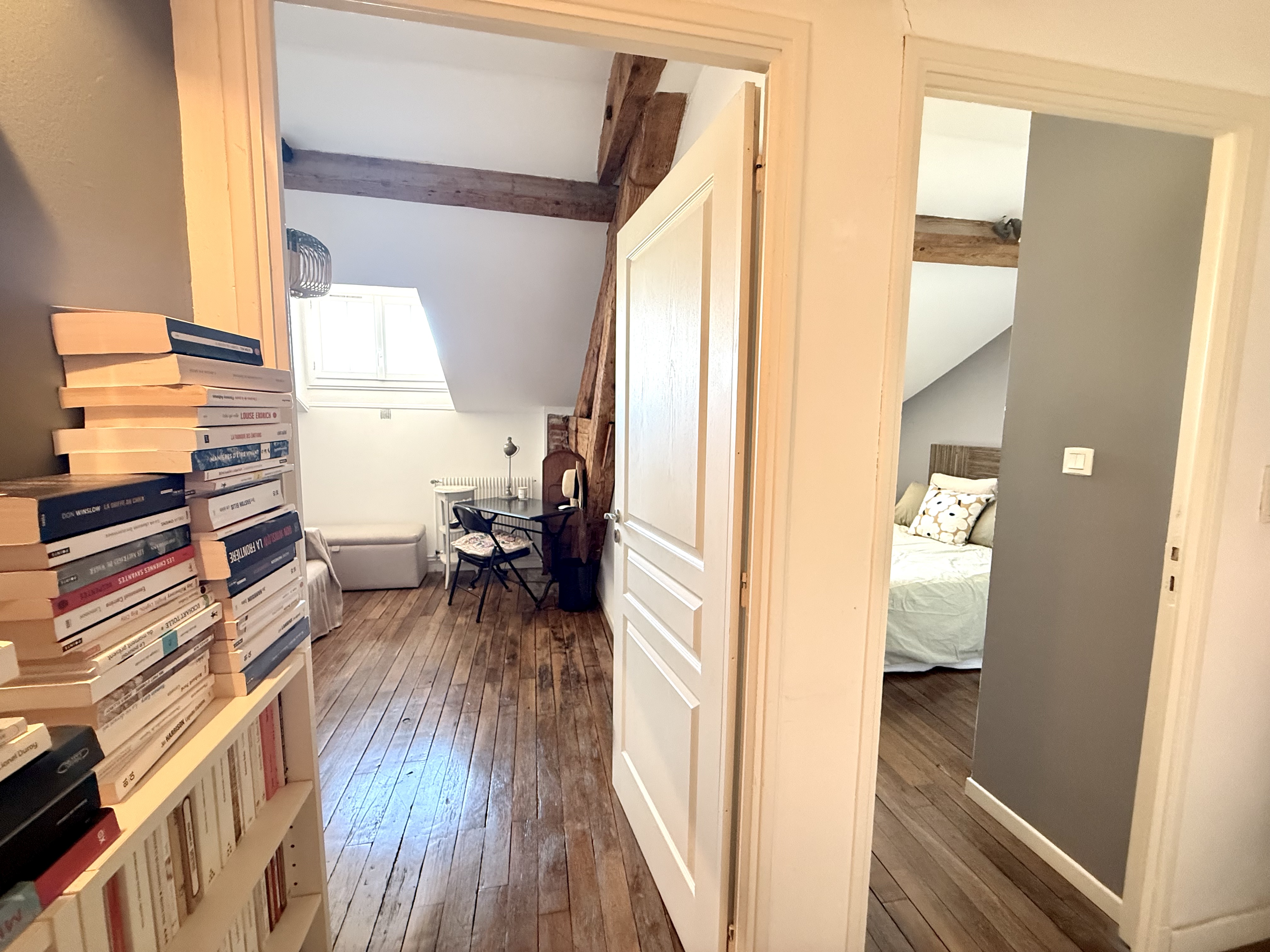 St Aubin, appartement atypique coup de cœur ! Situé dans une petite rue calme, ce bien rare vous charmera par ses belles baies vitrées esprit atelier, sa lumière généreuse et son caractère. Sa distribution sur 2 niveaux principaux offre au 1er étage un salon-séjour et une cuisine équipée ainsi que des rangements et wc. Le dernier étage distribue deux chambres agréables avec fenêtres en chien assis, une grande salle d’eau avec douche à l’italienne, double vasque et coin buanderie. Un espace intermédiaire accueille un bureau ou salon TV, ouvert sur la pièce principale. 70,5m2 Loi Carrez et 75m2 de surface totale. Amoureux du centre ville, de l’atypique et sensible au charme de l’ancien, ce bien vous séduira irrémédiablement !